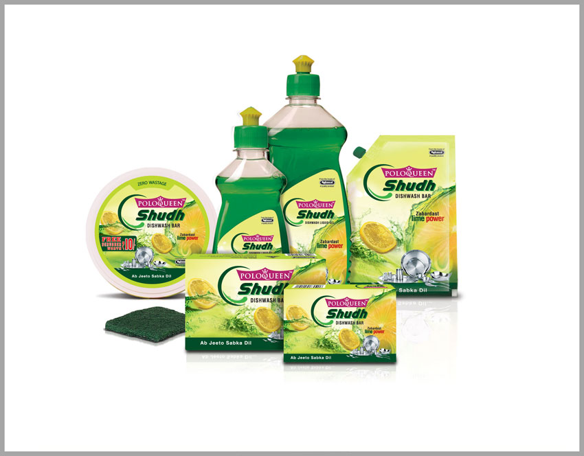 Poloqueen’s SHUDH Dishwash ‘Zabardast Lime Power’ Liquid and Bar help clean your dishes quickly and conveniently without soiling the immediate environs. The high-quality cleansing agents ensure that you are able to clean off greasy and dried food stains with little effort, leaving behind a range of pots and pans, glasses and cutlery that look sparkling new, even after serving you for years.